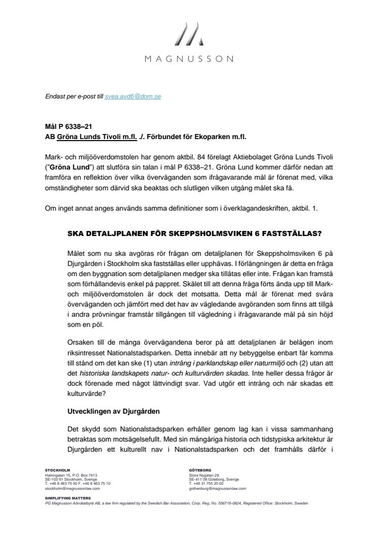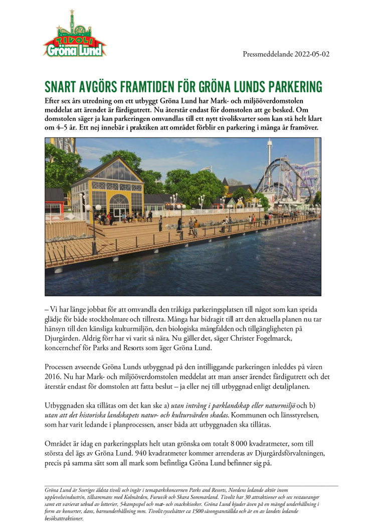Läs mer om Gröna Lunds utbyggnadsplaner på www.gronalund.com/2024 och ta del av Gröna Lunds slutliga yttrande till Mark- och miljööverdomstolen i bifogad pdf.