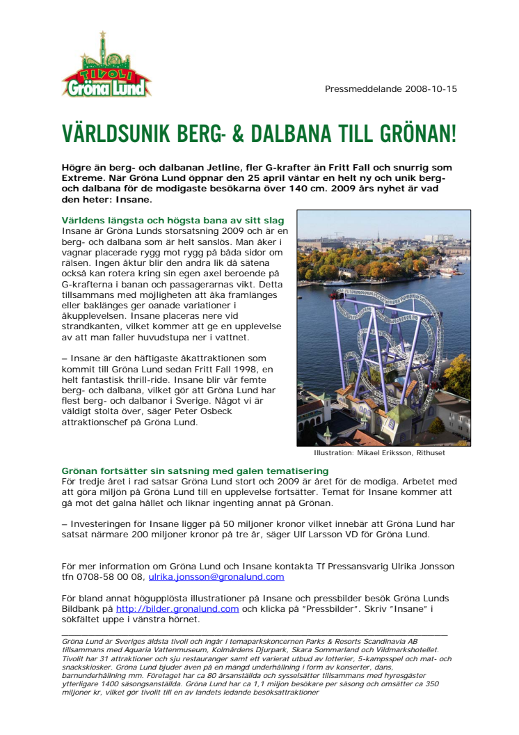 För mer information om Gröna Lund och Insane kontakta Tf Pressansvarig Ulrika Jonsson tfn 0708-58 00 08, ulrika.jonsson@gronalund.com