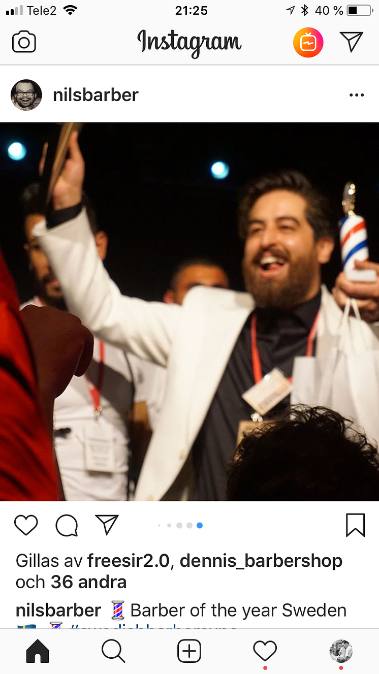 Vinnare av Årets barberare 2018 blev Amin Iranmanesh från Salong Randevu i Göteborg, som i våras vann semifinalen för Västkusten. Detta har uppmärksammats i medier i hans hemland Iran.