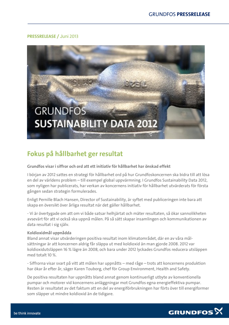Grundfos visar i siffror och ord att ett initiativ för hållbarhet har önskad effekt