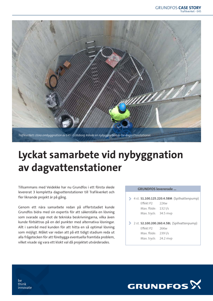 Tillsammans med Veidekke har nu Grundfos i ett första skede levererat 3 kompletta dagvattenstationer till Trafikverket och fler liknande projekt är på gång.