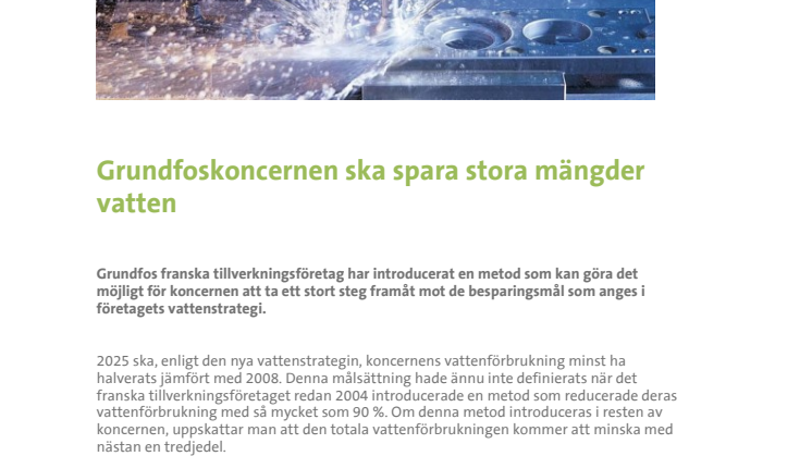 Grundfoskoncernen ska spara stora mängder vatten