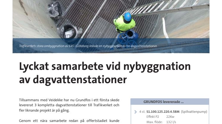 Tillsammans med Veidekke har nu Grundfos i ett första skede levererat 3 kompletta dagvattenstationer till Trafikverket och fler liknande projekt är på gång.