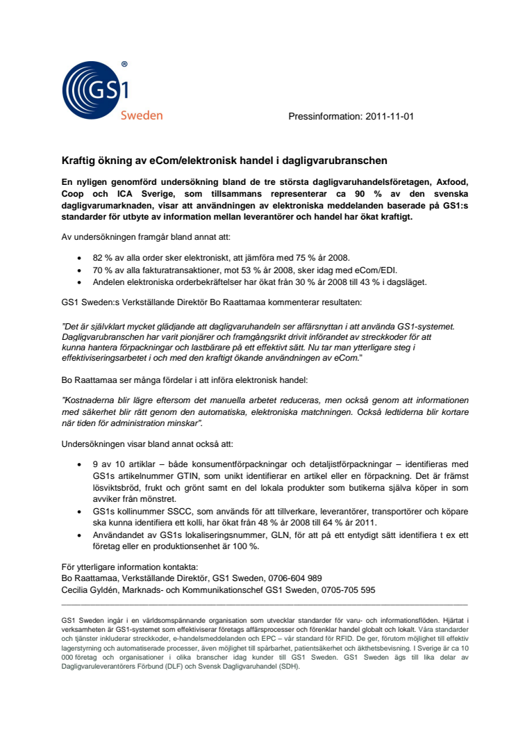 • Kraftig ökning av eCom/elektronisk handel i dagligvarubranschen