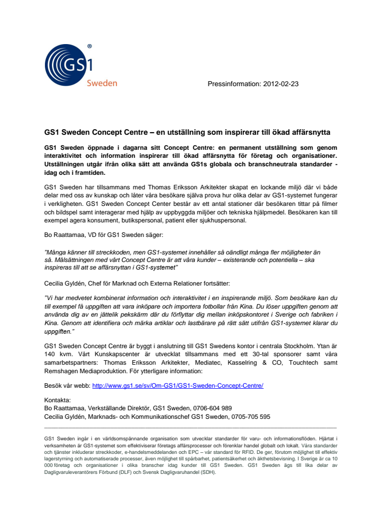 • GS1 Sweden Concept Centre – en utställning som inspirerar till ökad affärsnytta