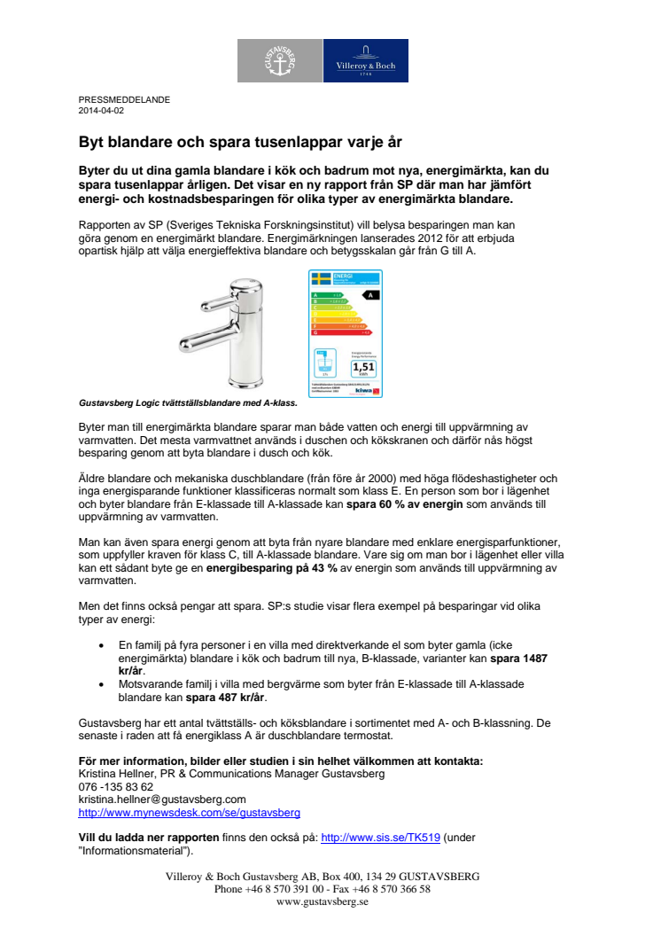 Byter du ut dina gamla blandare i köket och badrummet mot nya, energimärkta, kan du spara tusenlappar årligen. Det visar en ny rapport från SP där man har jämfört energi- och kostnadsbesparingen för olika typer av energimärkta blandare.