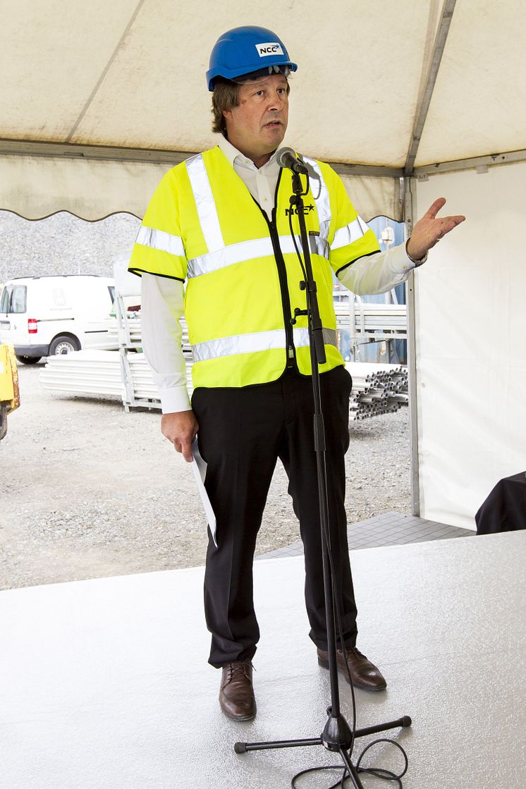 Ekobacken är platsen för Villeroy & Boch Gustavsbergs nya anläggning för logistik och montering i Gustavsberg. Måndagen 16 juni togs det första symboliska spadtaget för fabriken. På bilden syns Peter Larsson; VD på Villeroy & Boch Gustavsberg AB.
