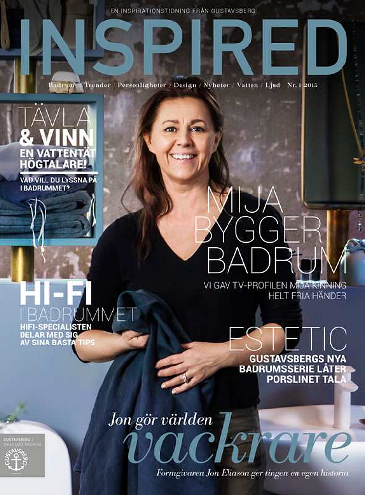 Omslaget till det första numret av Inspired, Gustavsbergs nya inspirationsmagasin. På omslaget syns inredaren Mija Kinning.