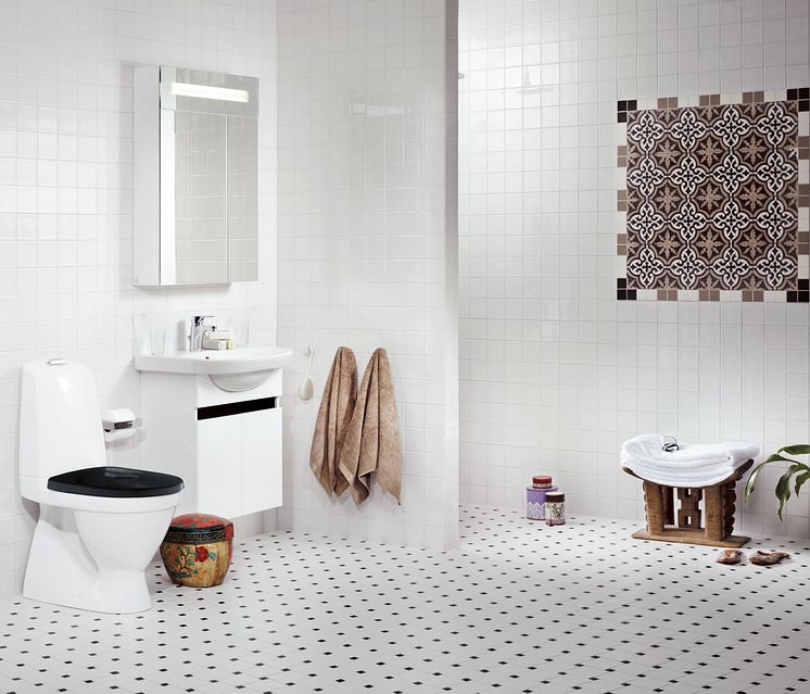 Badrum med badrumsserien Nautic - Designed by you. Handmålat kakel från Marrakech. För större format vänligen kontakta oss.