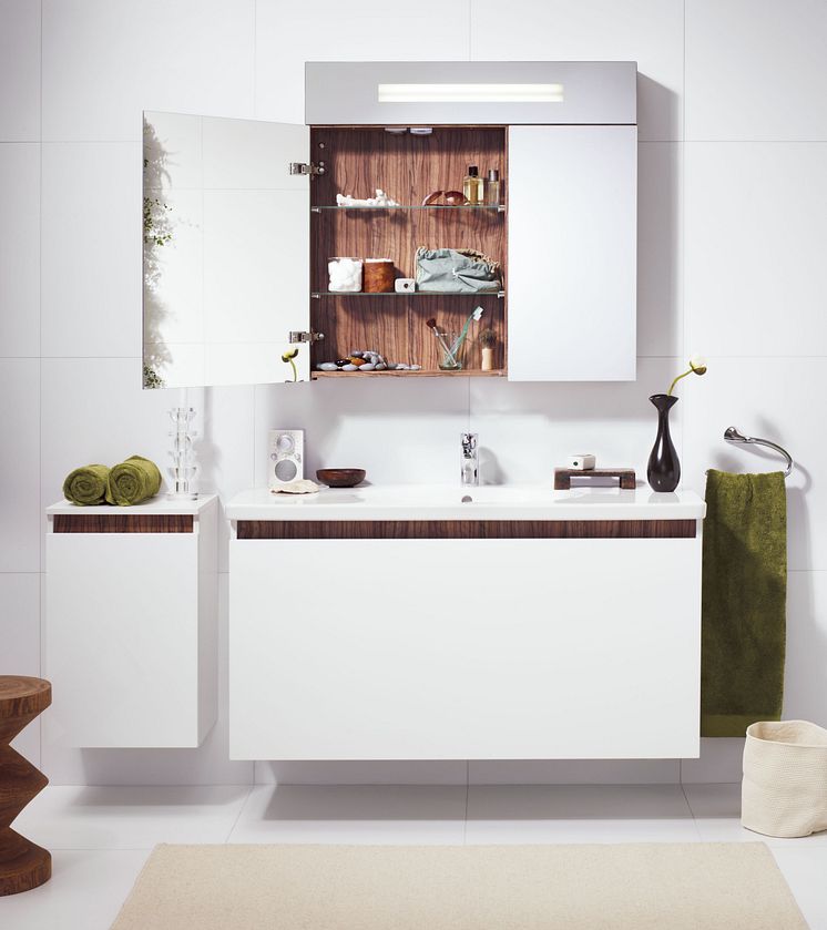 Nautics möbelserie finns i fyra färger: olivträ, vit högglans, grå matt och vit matt. Dekorlisten ovanför dörrarna finns att välja på i 5 färger: olivträ, vit högglans, svart högglans, röd, aluminium. För bild i större format vänligen kontakta oss.