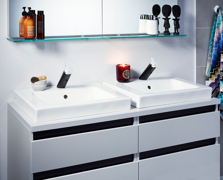 Tvättställsskåpet Nautic med heltäckande tvättställ har utvecklats till en mer praktisk möbel. Skåpet har nu två lådor istället för en, vilket möjliggör för mer förvaring och ger ett mer harmoniskt intryck. Hela sortimentet i badrumsserien Nautic har dessutom renodlats vilket resulterat i färre produkter, färger och artiklar.