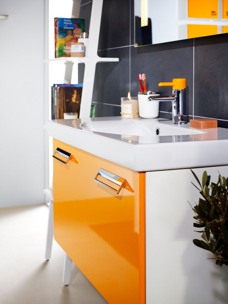 Orange badrum från Gustavsbergs Logic-serie.