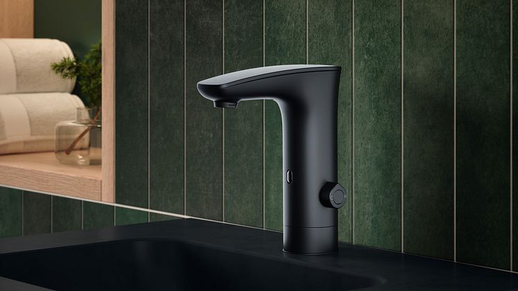 Den mest energieffektiva blandaren är den som aldrig spolar varmvatten i onödan. Sensoric från Gustavsberg möjliggör bästa möjliga hygien och extra låg vattenförbrukning – nu även i dramatiskt matt svart utförande.