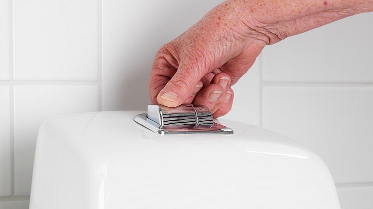 Förhöjd spolknapp på Nautic WC - ergonomisk och godkänd av Reumatikerförbundet