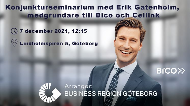 Business Region anordnar konjunkturseminarium med ett av våra alumnibolags företagsledare, Erik Gatenholm, medgrundare till Bico och Cellink