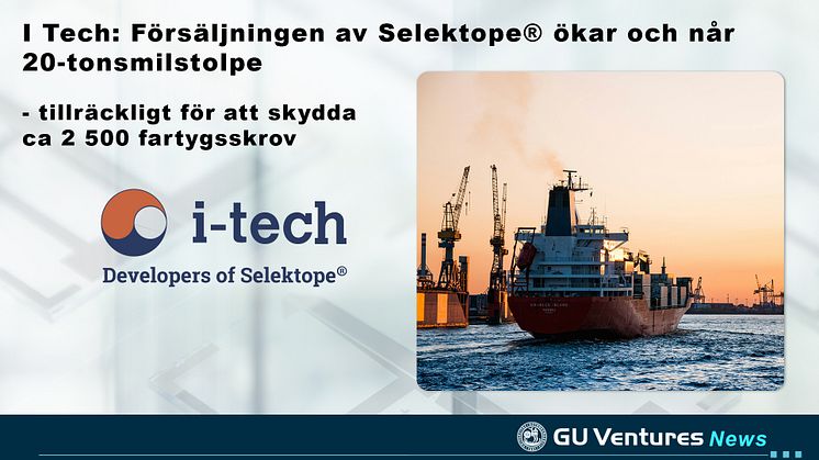 I Tech: Försäljningen av Selektope® ökar och når 20-tonsmilstolpe - tillräckligt för att skydda ca 2 500 fartygsskrov