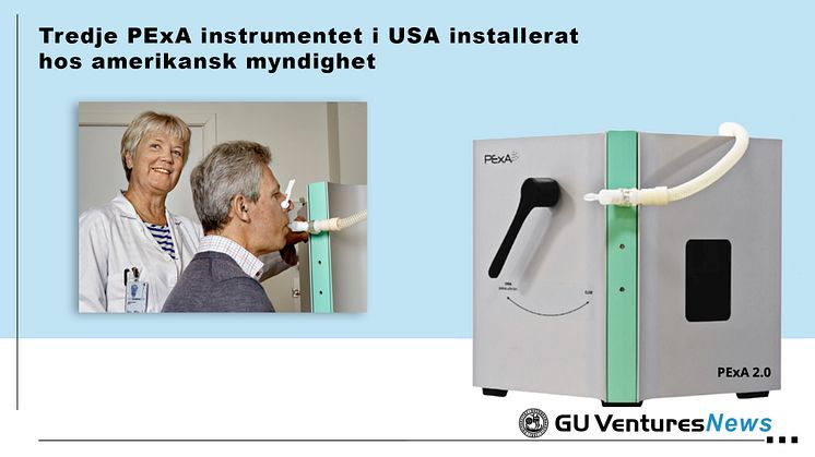 Ytterligare ett PExA instrument, för icke-invasiv insamling av biologiskt material från de inre delarna av lungorna, har installerats i USA, denna gång hos en statlig myndighet. Den 1 februari meddelade PExA att myndigheten hade lagt en order på ett instrument. Den nu genomförda installationen innebär att det nu, i USA, finns tre PExA instrument installerade för användning inom forskning rörande sjukdomar i lungorna. Installation och utbildning har genomförts på plats hos kunden.