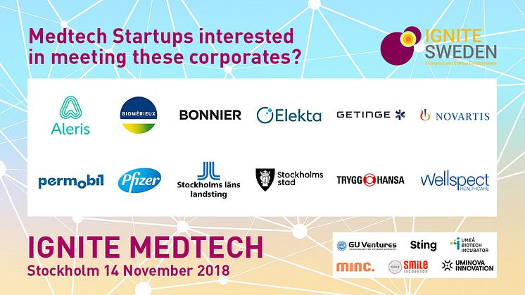 Driver du ett företag inom medicinteknik? Vill du sälja era produkter eller tjänster till vården och/eller medtech industrin? Vill du starta samarbete med några av Sveriges största vårdgivare och företag inom området? Ansök till @IgniteSweden för att få pitcha ert erbjudande till dessa potentiella kunder och partners.