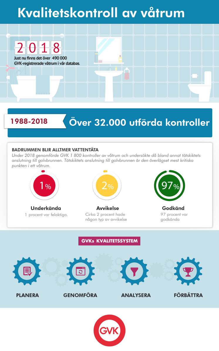Fortsatt god utveckling för täta badrum - statistik från GVK 2018