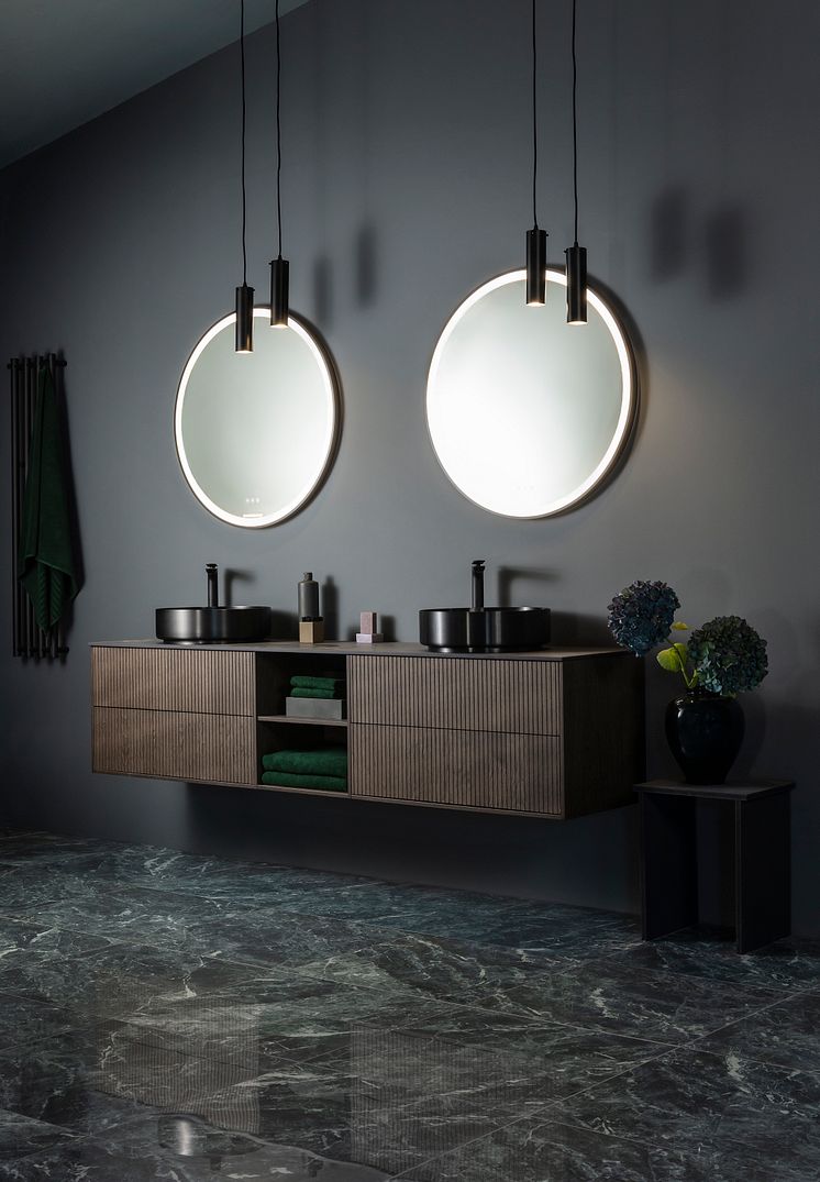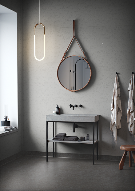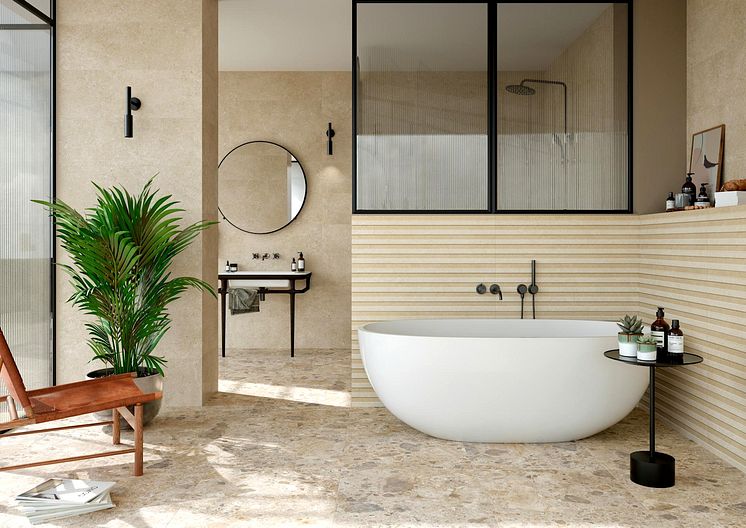 De lugna nyanserna är reaktionen på en önskan att söka sig bort från ”vitt och fräscht” till harmoniska, vilsamma badrum, till en privat plats för avkoppling och återhämtning. I naturtrenden ingår även rustika ytor med struktur och handgjord känsla.