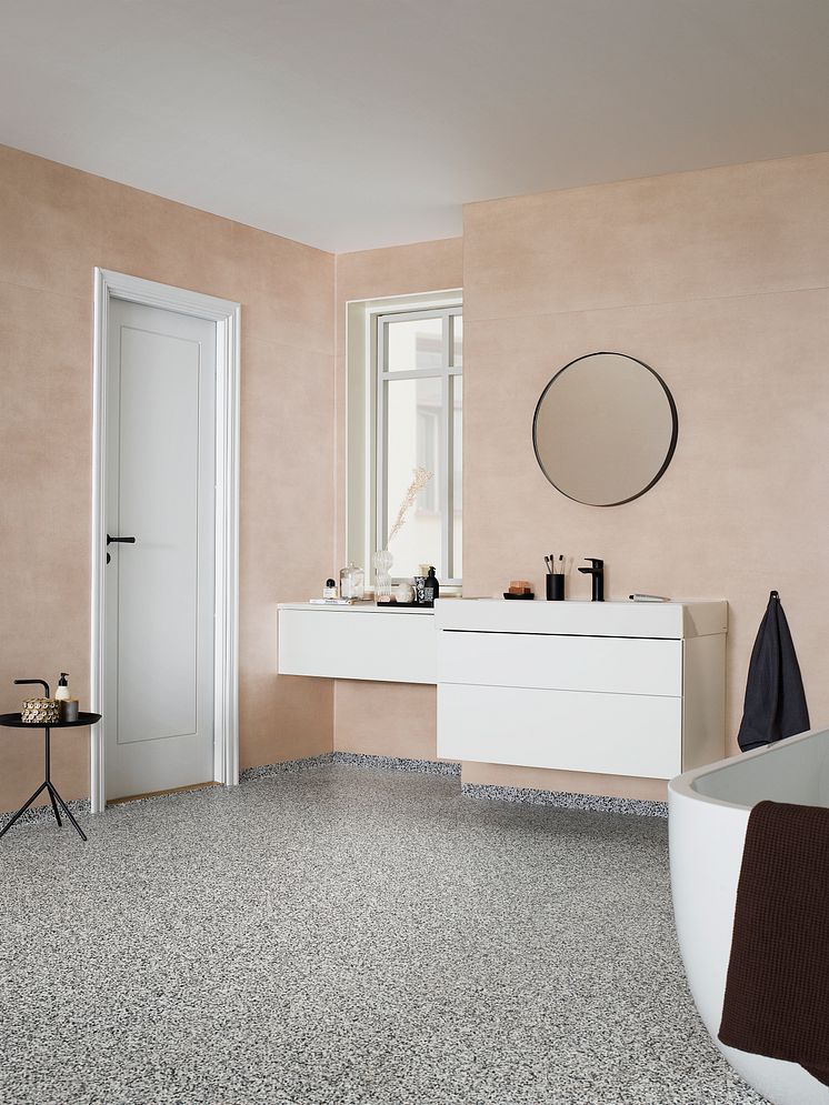 Badrumsvinyl är ett funktionellt, slitstarkt och lättstädat alternativ. I år har golv- och väggplasten ett starkt startfält med uttryck som varierar från tidlöst elegant design till mönster som trä, betong och terrazzo.