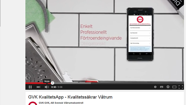 En viktig del av GVK-företagens kvalitetsprocess för vattentäta, branschgodkända badrum är att dokumentera det utförda våtrumsarbetet. Med den nya Kvalitetsappen blir det enkelt att direkt på plats organisera och spara ned uppgifter om det aktuella badrummet. Med samma grunduppgifter skapas obligatorisk Våtrumsdeklaration, För- och Egenkontroller samt det attraktiva Våtrumsintyget till beställaren. Enkelt, effektivt och vattentätt! Se filmen här;