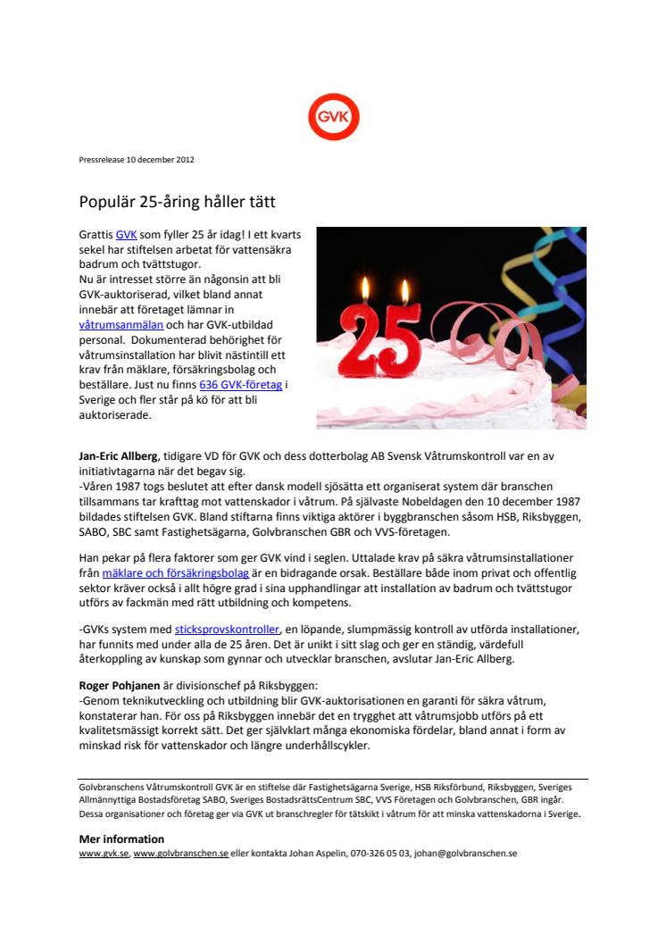 år idag! I ett kvarts sekel har stiftelsen arbetat för vattensäkra badrum och tvättstugor. Nu är intresset större än någonsin att bli GVK-auktoriserad,