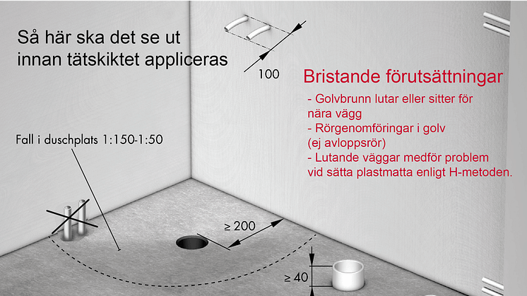 Gamla golvbrunnar, försvårande rörgenomföringar och felaktiga fall mot golvbrunn. Det är några av de vanligaste, och mest allvarliga, brister som kan möta GVK-företaget som ska montera tätskikt i ett badrum. GVKs undersökning, där mer än 200 företag svarat, visar svart på vitt att det krävs bättre samordning i byggprocessen för att minska gapet mellan branschens regler för säkra våtrum och de förutsättningar som faktiskt gäller ute på byggplatsen.