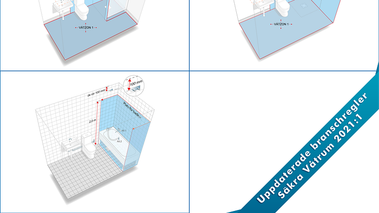 Tidigare har det förekommit missförstånd om vad som gäller i våtzon 1 och 2, samt hur plats för bad eller dusch ska definieras. De uppdaterade branschreglerna har nu förtydligat vilka krav som gäller i respektive zon. Både text och illustrationer beskriver på ett tydligt sätt vad som krävs för fackmässig installation.