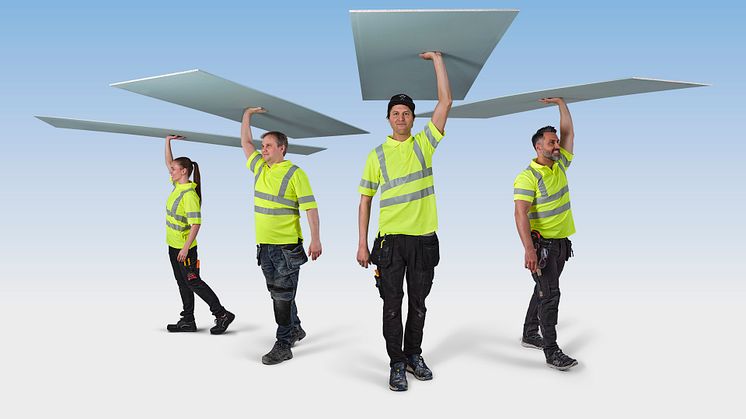 "Gyproc Ergolite kan ersätta en vanlig gipsskiva åtta av tio gånger men med fördelarna av lägre vikt, bättre arbetsmiljö och mindre klimatpåverkan, berättar Thomas Viktorsson, Kategorichef Gyproc. "Av de skälen vill vi se Gyproc Ergolite som det självklara förstahandsvalet i byggprojektet, det nya normala helt enkelt."