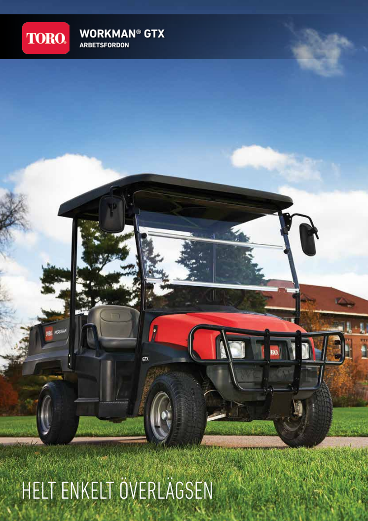Toro Workman GTX är ett Crossover fordon vars enastående balans mellan komfort, mångsidighet och kontroll, gör den helt enkelt överlägsen konkurrenterna. Tack vare sin ökade effekt, förbättrade styrning och exklusiva fjädrings- och bromssystem är Workman GTX det mest mångsidiga, praktiska och bekväma arbetsfordonet i klassen. Finns i bensin- och elversion och har hundratals anpassningsmöjligheter.