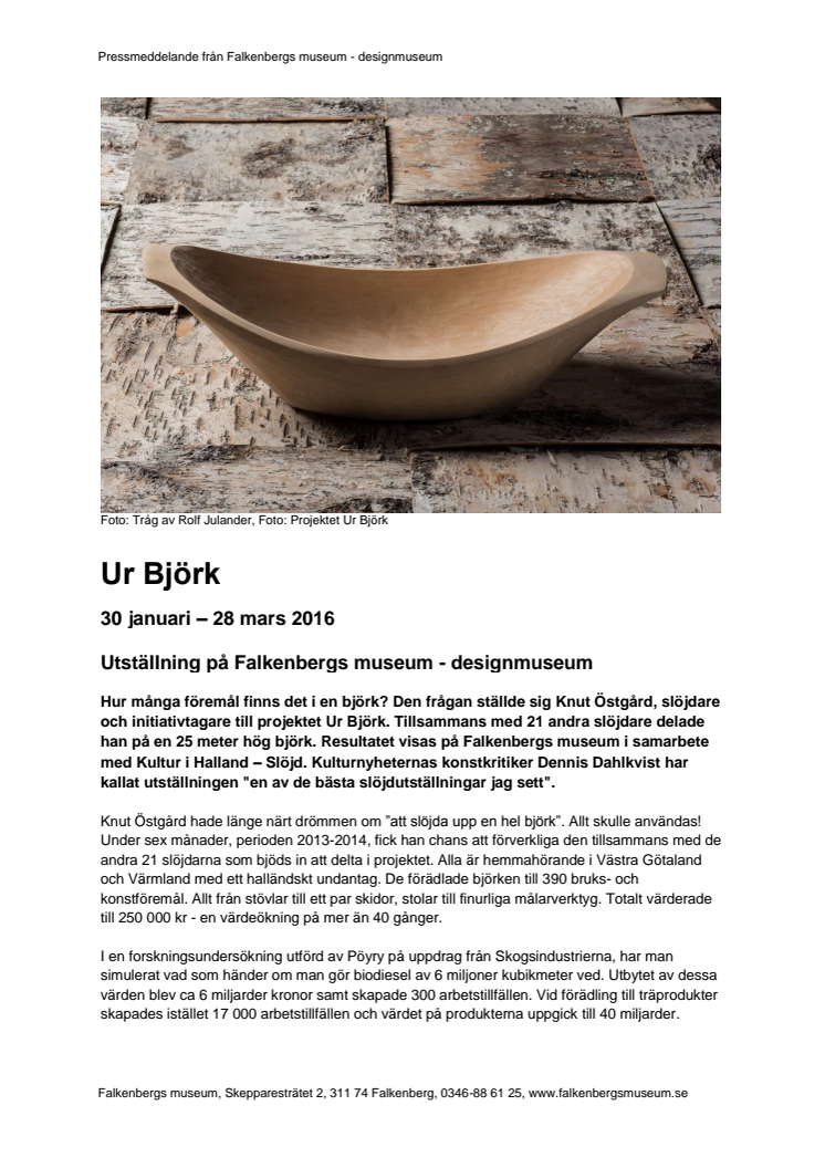 Pressmeddelande Ur Björk, Falkenbergs museum