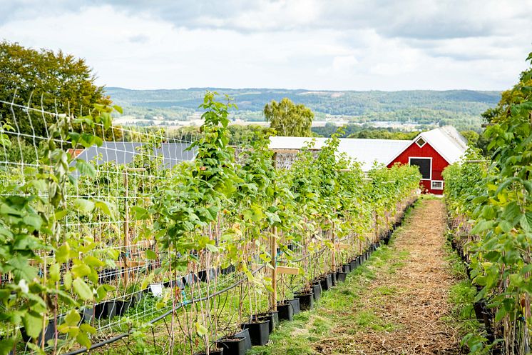 På de böljande fälten mellan Falkenberg och Halmstad odlas långa rader med jordgubbar och hallon. Här kan du själv komma och plocka de ljuvliga bären. Den vackra utsikten kommer på köpet. Här finns även ett sommarcafé med en härlig bärbuffé, en nystartad gårdspizzeria och vinproduktion.
