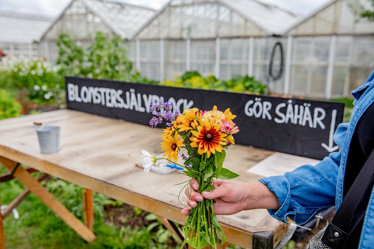 Blomsterfarmen är en liten odling med självplock. Här finns många härliga och olika sorter som varierar över säsong. Blommorna är naturligt odlade och du plockar dina favoritblommor och betalar sedan kontant eller med swish.