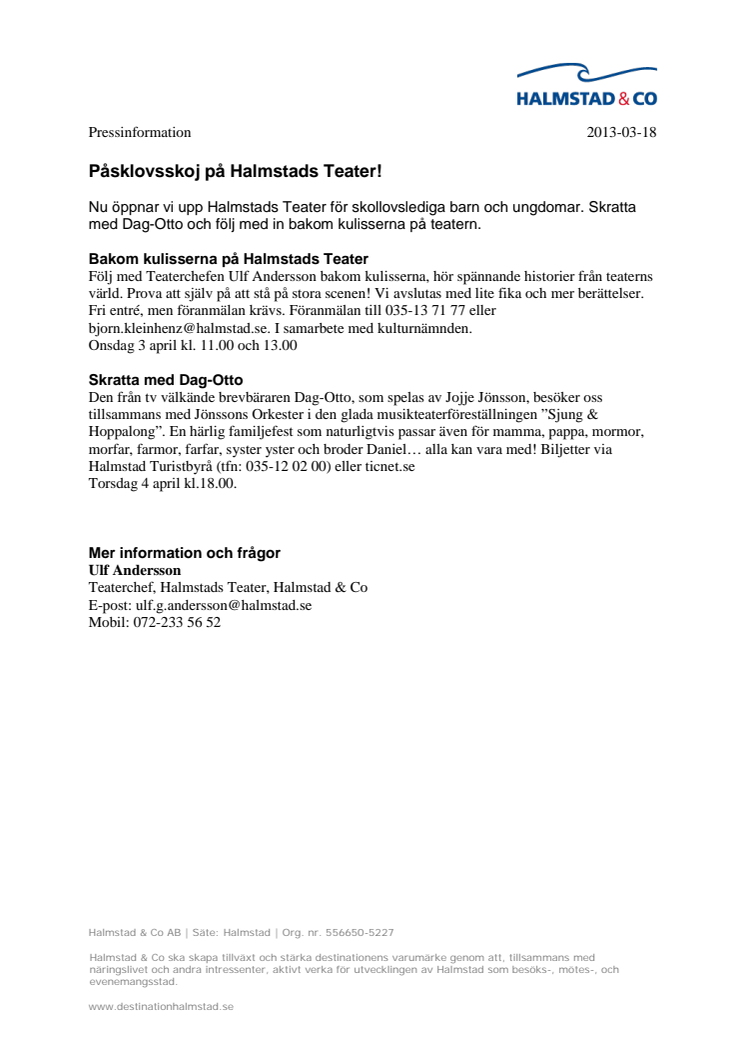 Nu öppnar vi upp Halmstads Teater för skollovslediga barn och ungdomar. Skratta med Dag-Otto och följ med in bakom kulisserna på teatern.