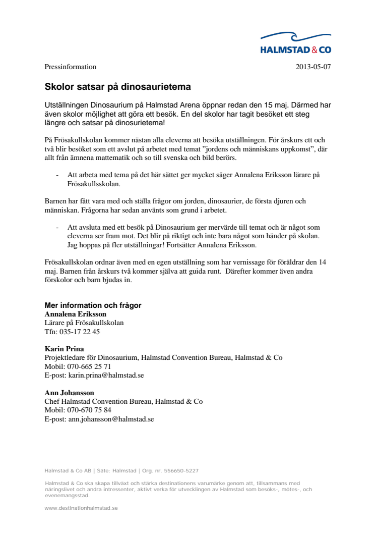 Utställningen Dinosaurium på Halmstad Arena öppnar redan den 15 maj. Därmed har även skolor möjlighet att göra ett besök. En del skolor har tagit besöket ett steg längre och satsar på dinosurietema!