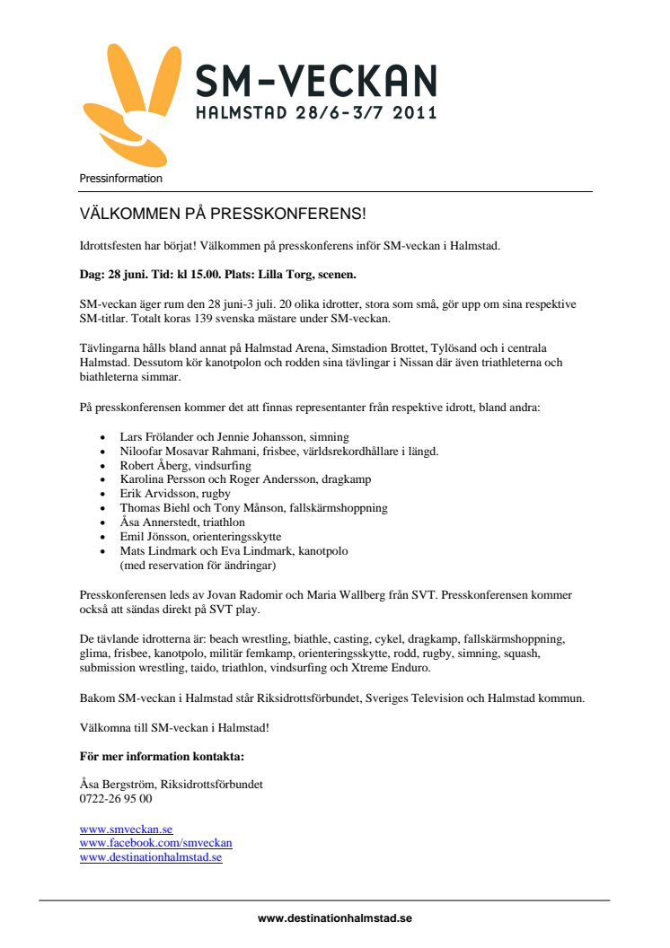 Idrottsfesten har börjat! Välkommen på presskonferens inför SM-veckan i Halmstad.