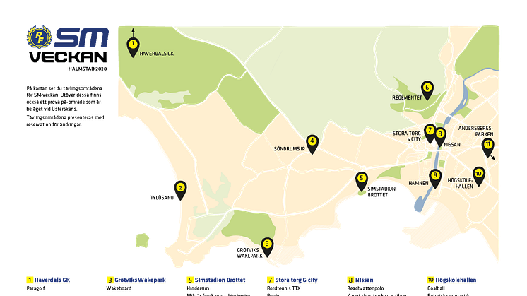 I sommar återvänder SM-veckan till Halmstad för tredje gången. Nu står det klart vilka tävlingsområden som är aktuella för tävlingarna 24 till 30 juni 2020. Halmstad city kommer fyllas med tävlingar som beräknas locka tiotusentals besökare.