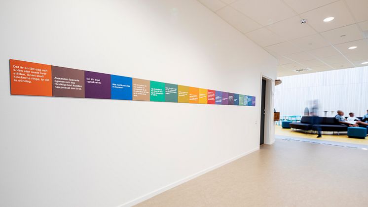 Med meningar ur elevernas favoritböcker skapade konstnären Eva Beierheimer det konstverk som pryder biblioteket på Kärlekens nybyggda skola. Det färdiga resultatet är ett lekfullt möte mellan konstgenrer som bjuder in till nyfikenhet och läslust.