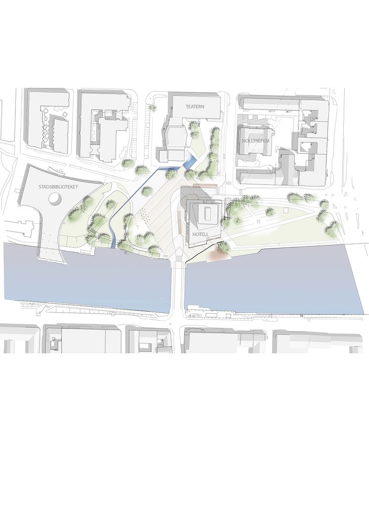 - Viktiga kulturhistoriska delar av platsen skyddas i detaljplanen, så som brofästen på Österbro och kajkanter längs Nissan. Ytan mellan Nissan och hotellet förblir en allmän plats, öppen för alla att vara på.