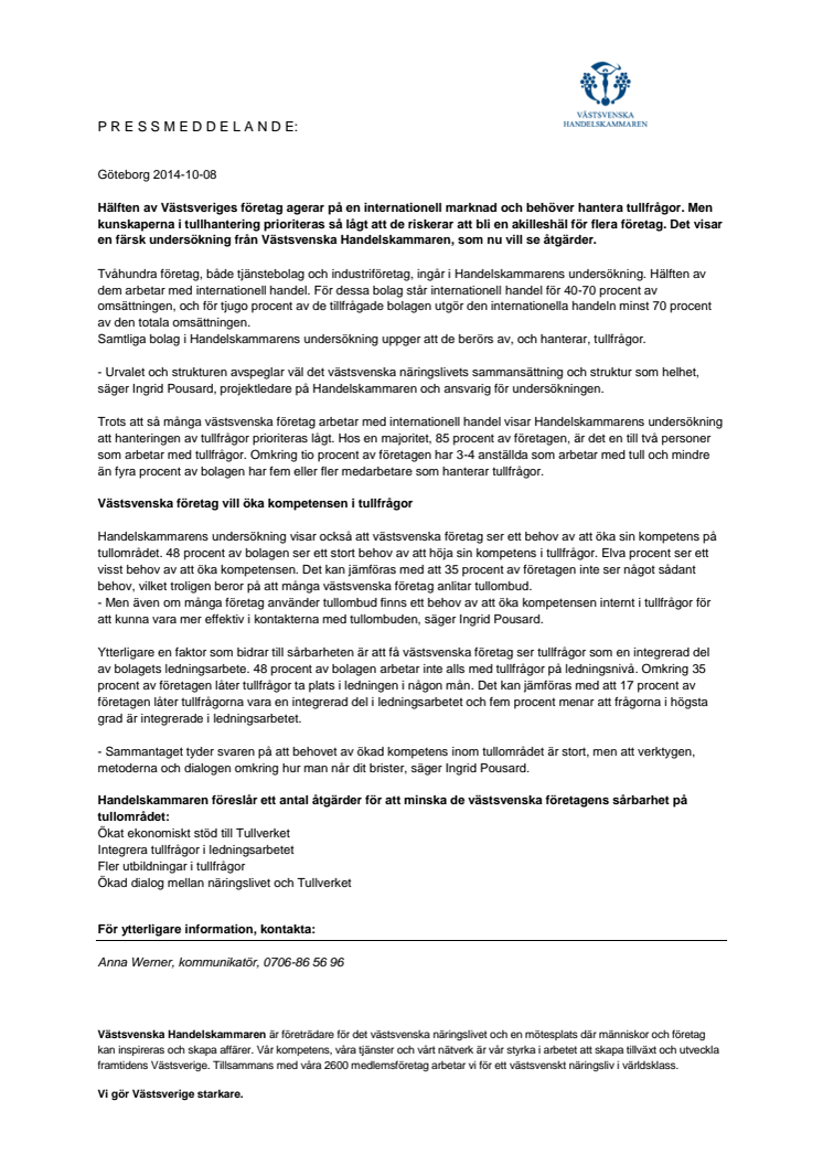 Hälften av Västsveriges företag agerar på en internationell marknad och behöver hantera tullfrågor. Men kunskaperna i tullhantering prioriteras så lågt att de riskerar att bli en akilleshäl för flera företag. Det visar en färsk undersökning från Västsvenska Handelskammaren, som nu vill se åtgärder.