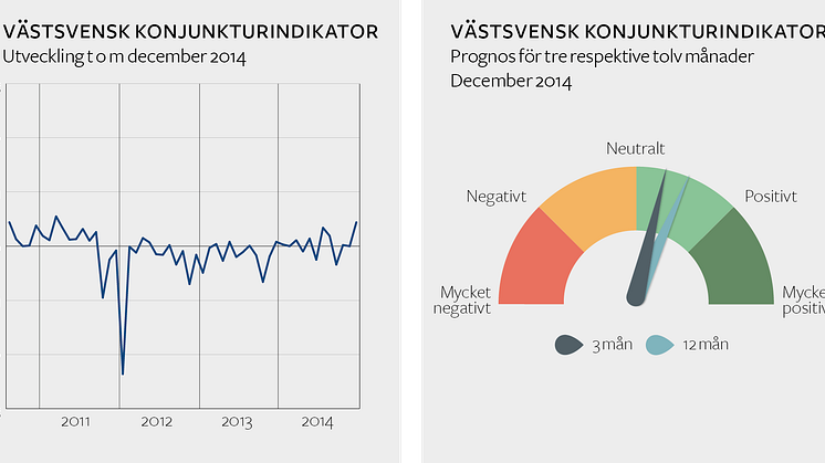 Den västsvenska konjunkturen i januari pekar uppåt, visar Västsvenska Handelskammarens indikator. De västsvenska företagen ser en positiv utveckling framför sig och styrkan i prognoserna har ökat jämfört med senhösten. Fler företag tror nu på en förstärkning av konjunkturen än på en försvagning.