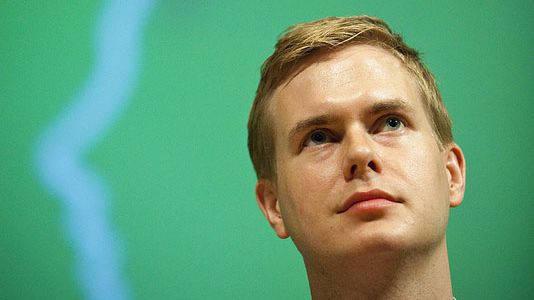 Miljöpartiets språkrör Gustav Fridolin sätter sig på