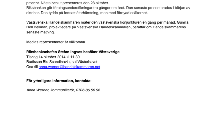 besöker Västsverige. Över en lunch håller Ingves ett anförande där han delar