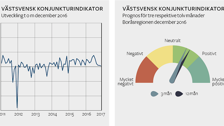 Höjda varseltal och en olöst hamnkonflikt får Västsvenska Handelskammarens konjunkturindikator att tillfälligt vända nedåt men företagen i Borås ser fortsatt ljust på konjunkturutvecklingen.