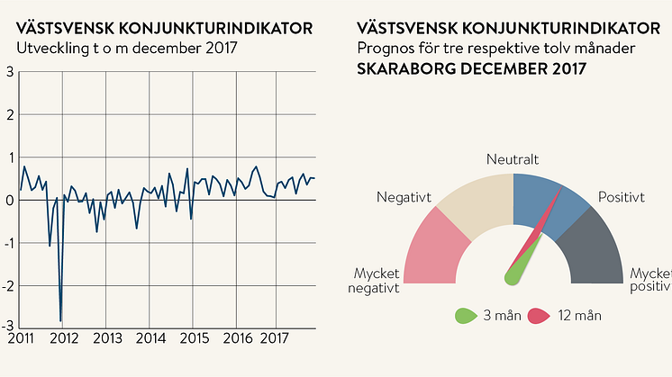 Låga nivåer av varsel och konkurser i kombination med en hög konsumtion leder till att Västsvenska Handelskammarens konjunkturindikator ligger kvar på en hög nivå. I Skaraborg är näringslivet fortsatt positiva till konjunkturutvecklingen.