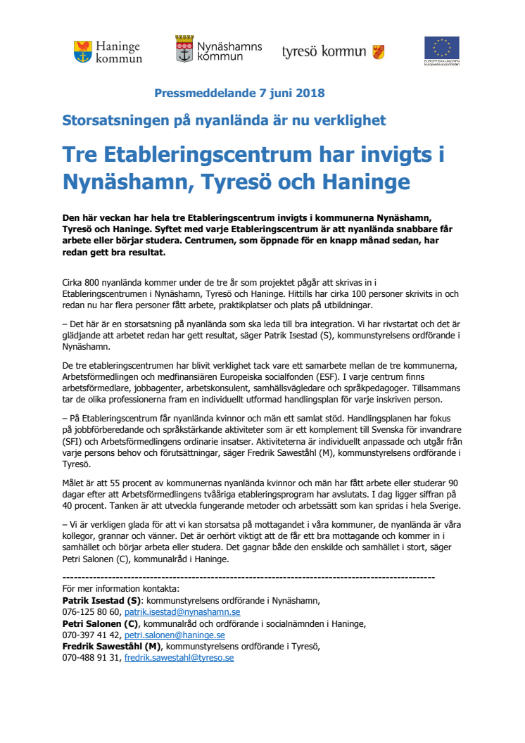 Storsatsningen på nyanlända är nu verklighet - Tre Etableringscentrum har invigts i Nynäshamn, Tyresö och Haninge