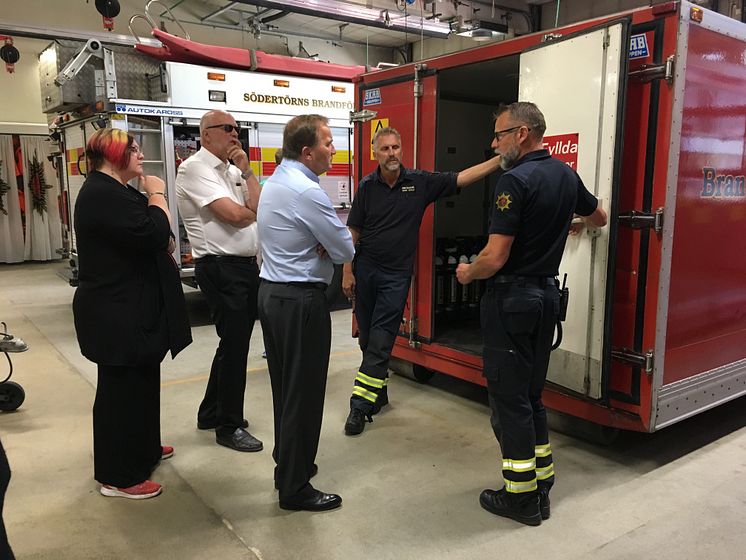 Statsminister Stefan Löfven besökte Haninge brandstation