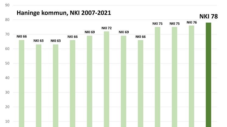 Haninge kommun ökar i den senaste NKI-mätningen (Nöjd Kund Index) till NKI 78, vilket är det högsta resultatet för kommunen sedan mätningarna började genomföras 2007. Haninge kommun lyfts fram som en av sju kommuner som lyckas få ett högt resultat i år, alltså ett NKI över 70 inom samtliga myndighetsområden.