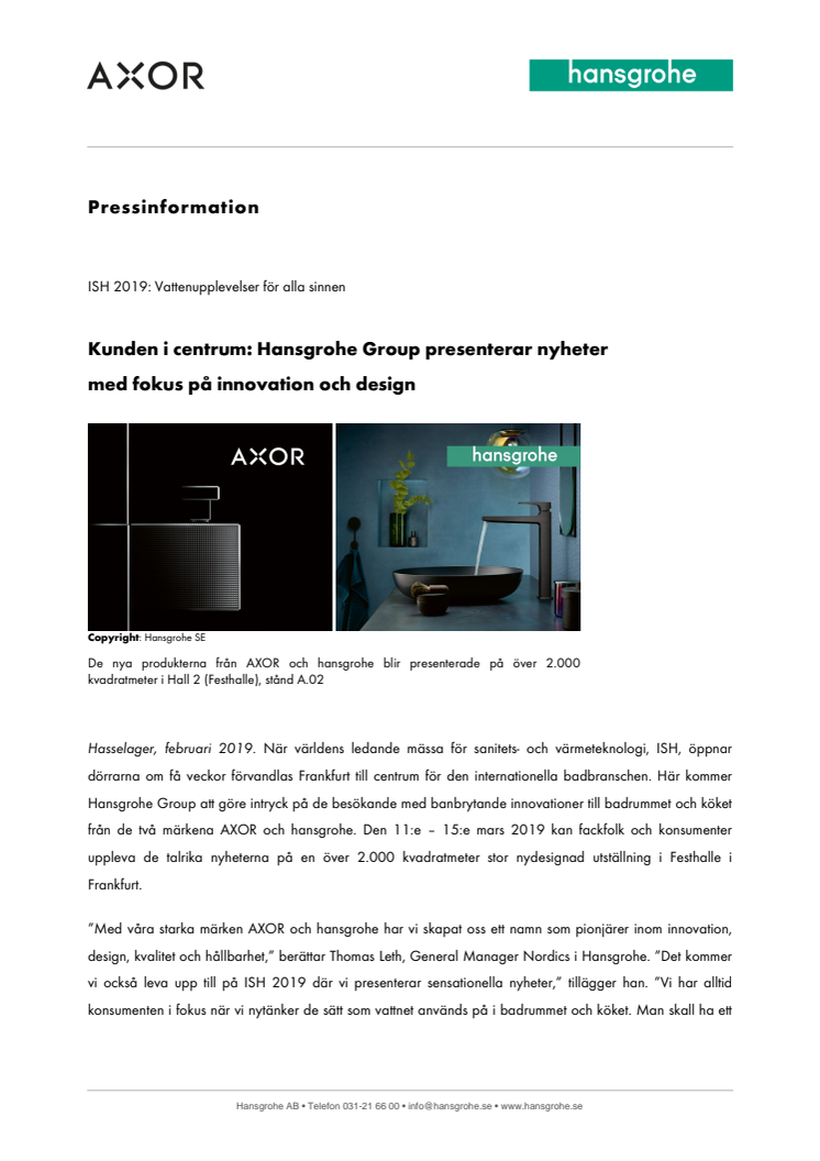 Kunden i centrum: Hansgrohe Group presenterar nyheter med fokus på innovation och design